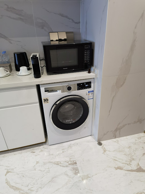 南京市的範圍是長方形,因此在住宿地我選擇在玄武區的玄武湖旁剛開幕的雅詩閣公寓式飯店,這家是連鎖店,我們之前在2023年無錫自助旅行時住過。房間內是有冰箱洗衣機與小型做飯區域,這種類型的房型是最適合1-2週的自助旅行,你不用帶太多的衣物,因為有洗衣機你天天可洗衣(飯店每天都提供洗衣精),我們住的這間設備是洗烘一體的,一個小時不但洗好也烘乾(220的功率就是不同)。價位是一天約 699 元人民幣。所以我最後在南京,天天同一套🤣🤣